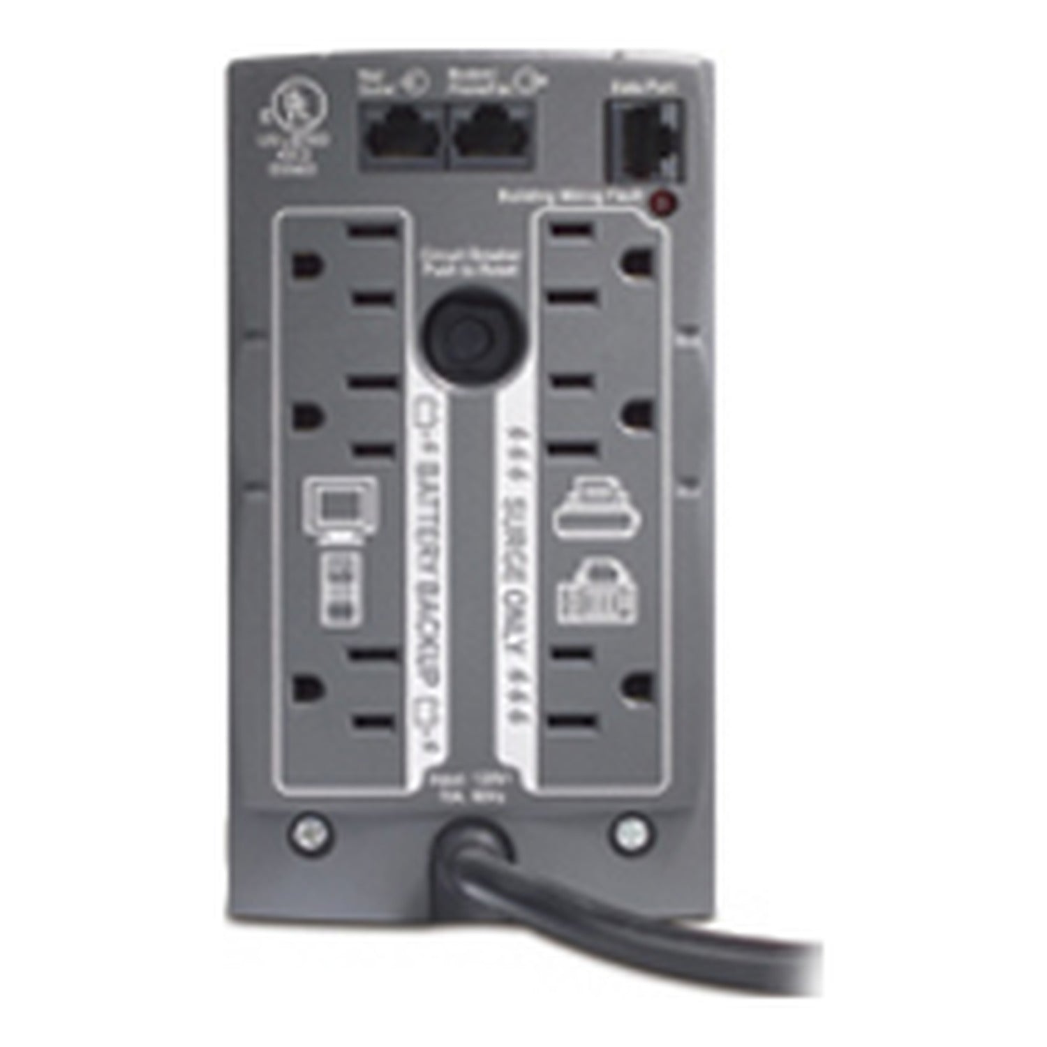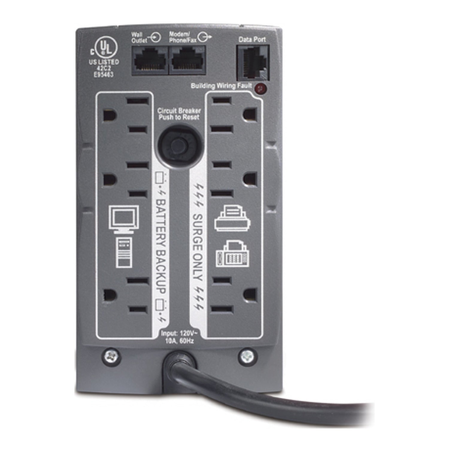 This APC Back-UPS offers power and surge protection for wireless networks, computers, gaming consoles and other electronics in your home or business. The 500VA tower UPS has 6 total outlets, 3 of which are battery backup, and 3 that are surge protection only. The UPS has a surge energy rating of 480 Joules. It provides data line protection with a RJ45 analog phone line for phone, fax, modem or DSL. This UPS has a 2-year warranty. Audible alarms provide notification of changing utility power and UPS conditions. Audible alarms can be muted. Package Contains UPS, CD with software, Cord management straps, USB cable, User manual