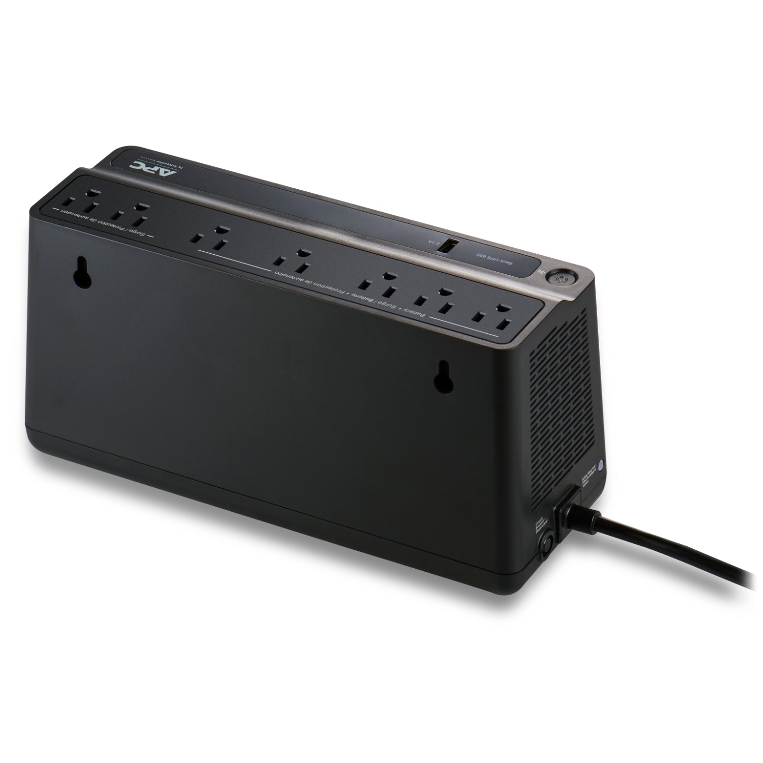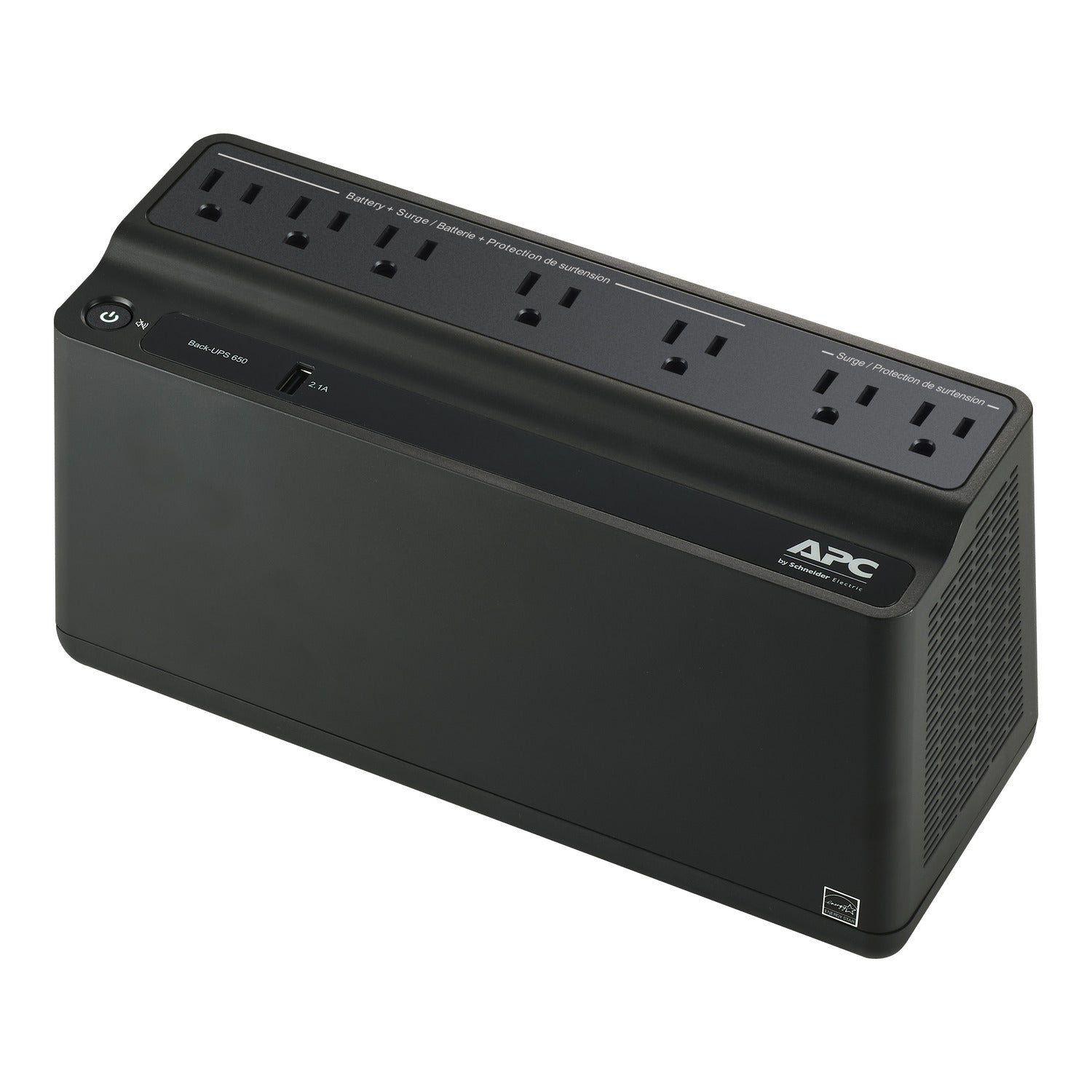 APC Back UPS, 650VA/360W, Floor/Wall Mount 120V, 7x NEMA 5-15R outlets, USB Type A Port, User Replaceable Battery