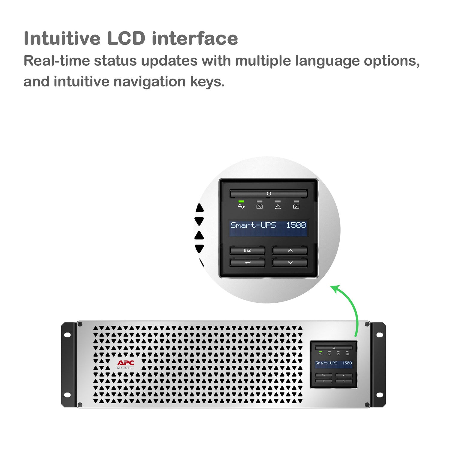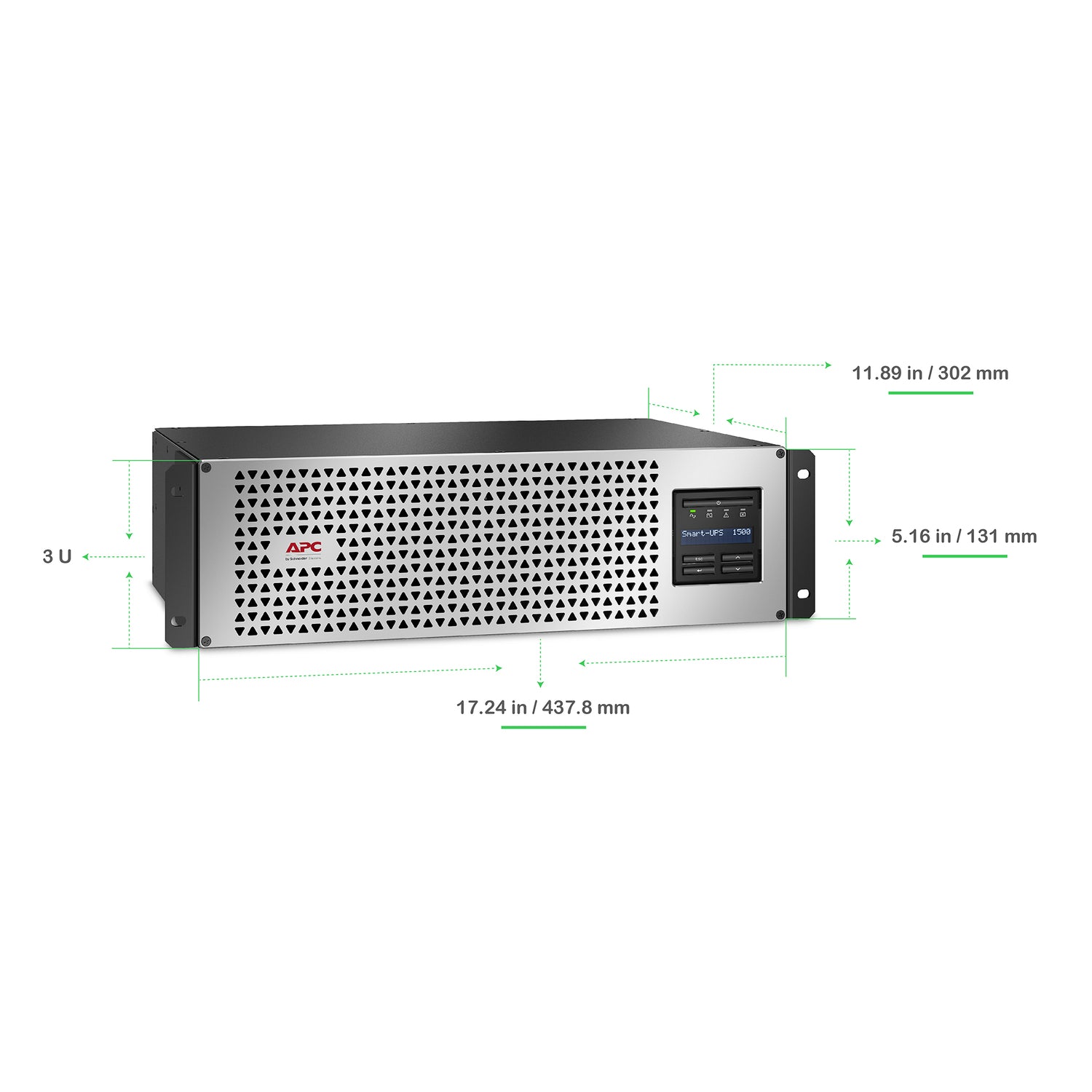 APC Smart-UPS, Line Interactive, 1500VA, Lithium-ion, Rackmount 3U, 120V, 6x NEMA 5-15R outlets, SmartConnect Port+Network Card, Short Depth, AVR, LCD
