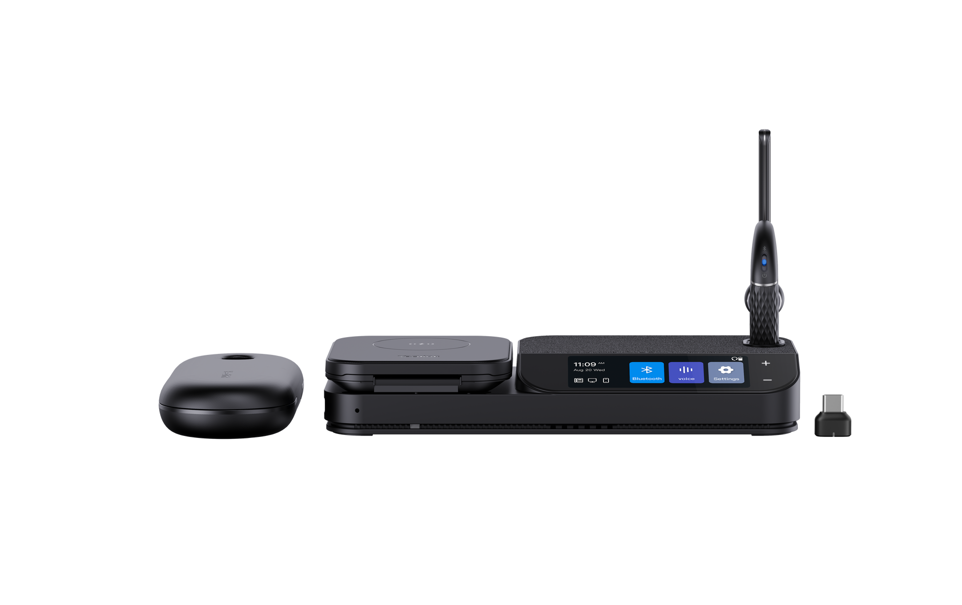 The BH71 Workstation Pro Mono Bluetooth Wireless Business Headset System provides a high-definition audio quality no matter in the car, on the train or in the office whether connect to your smartphone, desk phone or PC. With the 4-mic beamforming noise cancellation technology, you can always be heard clearly. The BH71 Workstation also provides an adjustable ear hook for comfortable wearing, and you can pull out the ear hook easily to best fit your ear. Whether you are on-the-go or in the office, BH71 Workstation Pro can guarantee 10-hour talk time to secure your all-day use. What's more, with the portable charging case, it can provide an 20-hour of extra battery life and even cover all week's use. It has a base station that can connect to your desk phone, PC and smartphone simultaneously and provide you with an all-in-one UC communication experience. The station also has a 3-inch touch screen, a speakerphone, 3 USB 3.0 ports, and a Qi wireless charger for your smartphone.